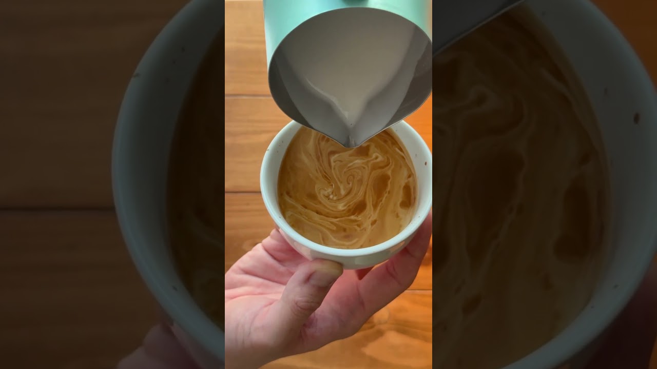 家庭用エスプレッソマシンでロゼッタのラテアート(330)|ボトムレスフィルターのソリスパーフェクタプラス #shorts #adeliecoffeelab おうちカフェ X Facebook はてブ LINE コピー 2025.08.14 @Adelieのおうちカフェとラテアート お気に入りの極深煎りのコーヒー豆から エスプレッソを抽出しまして カフェラテに仕上げました。 ラテアートも添えました。 #coffee, #bottomless, #カフェラテ,