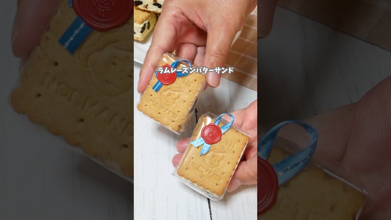 6.ノルマンディークッキーに合わせて、約40℃に温めたナイフで切ってクッキーではさみます。
