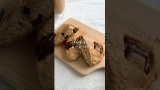 材料4つでバター不使用のスタバ風スコーンを作りました🍪短時間でできるので、おやつタイムにもぴったり✨詳しい作り方は本編をご覧ください♪【材料】(約6個分)・板チョコレート 1枚 50g・ホットケーキミックス 200g・油 45g・牛乳 45...